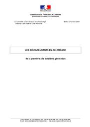 L'Allemagne s'est affirmée comme le producteur leader européen de biocarburants de première génération. Ces carburants étant sources de controverses, en raison d'une forte compétition avec le marché alimentaire et d'une rentabilité énergétique discutable, l'Allemagne se tourne davantage vers les biocarburants de seconde et troisième générations, plus prometteurs en matière d'efficacité énergétique, de réduction des émissions polluantes et de respect de l'environnement.