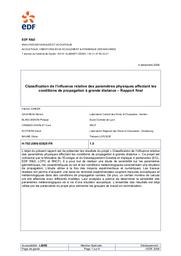 Classification de l'influence relative des paramètres physiques affectant les conditions de propagation à grande distance. Rapport final. 4 décembre 2006.