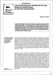 Les entreprises de transport en 1992 : moins de disparitions de petites entreprises.