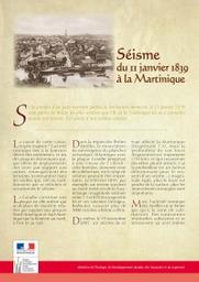 Cette brochure présente le séisme du 11 janvier 1839 qui a secoué la Martinique.Ce violent séisme de magnitude 7 à 7.5 sur l'échelle de Richter selon les estimations a occasionné de nombreuses victimes (261 morts et 250 blessés à Fort-Royal, actuel Fort-de-France) et des dégâts matériels importants.