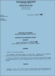 La délimitation d'un périmètre de risques géologiques dans le secteur du lac de Chalain par application de l'article R111.3 du code de l'urbanisme comprend un règlement et une carte de zonage. Les documents donnent des informations sur les risques géologiques et réglementent les constructions