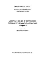 Les enjeux sociaux et techniques de l'observation régionale du secteur des transports.