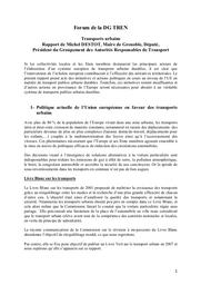 - Politique actuelle de l'Union européenne en faveur des transports urbains : livre banc sur les transports, réglement européen relatif aux services publics de transports de voyageurs par chemin de fer et par route, aspects transport de la stratégie thématique sur l'environnement urbain, transport et énergie, transports urbains et stratégie européenne, initiative CIVITAS.