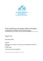 Ce rapport commence par une présentation de la méthodologie d'évaluation utilisée, notamment le modèle de péage de congestion standard ainsi que le modèle d'évaluation des bénéfices pour les transports collectifs. Il expose ensuite les évaluations des expériences de péage urbain de Londres (depuis 2003), Stockholm (2006), Oslo (depuis 1991). Il conclut par les enseignements retirés de l'évaluation de ces trois expériences.